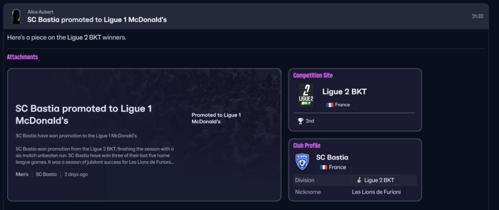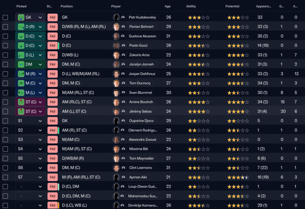 Nou in seizoen twee krijg ik het wel voor elkaar om direct te promoveren. De afgelopen jaren het in de beker competities de Ligue 1 teams het al aardig lastig kunnen maken. . Helaas heb ik nu wel pas een paar spelers die het niveau aan kunnen, maar ik heb vertrouwen in Blummelinho (8 goals en 5 assists) en Dahlhaus (3 goals en 13 assists). De toppertjes dit seizoen waren toch mijn twee spitsen Amine Boutrah (een heerlijke valse 9) en Jeremy Sebas (een heerlijke Channel Forward). Verder denk ik dat Zakaria Ariss voor veel clubs een leuke linksback kan zijn met de kwaliteit die hij op het begin heeft in combinatie met zijn leeftijd. Voor nu in ieder geval: Op naar de Ligue 1!